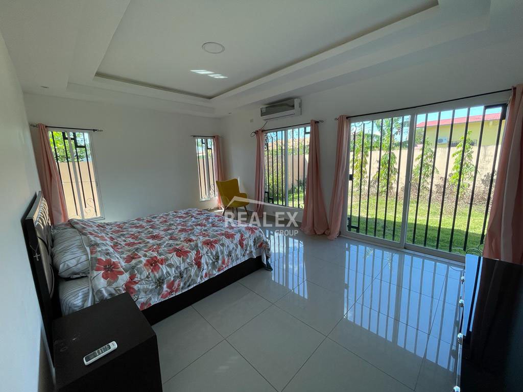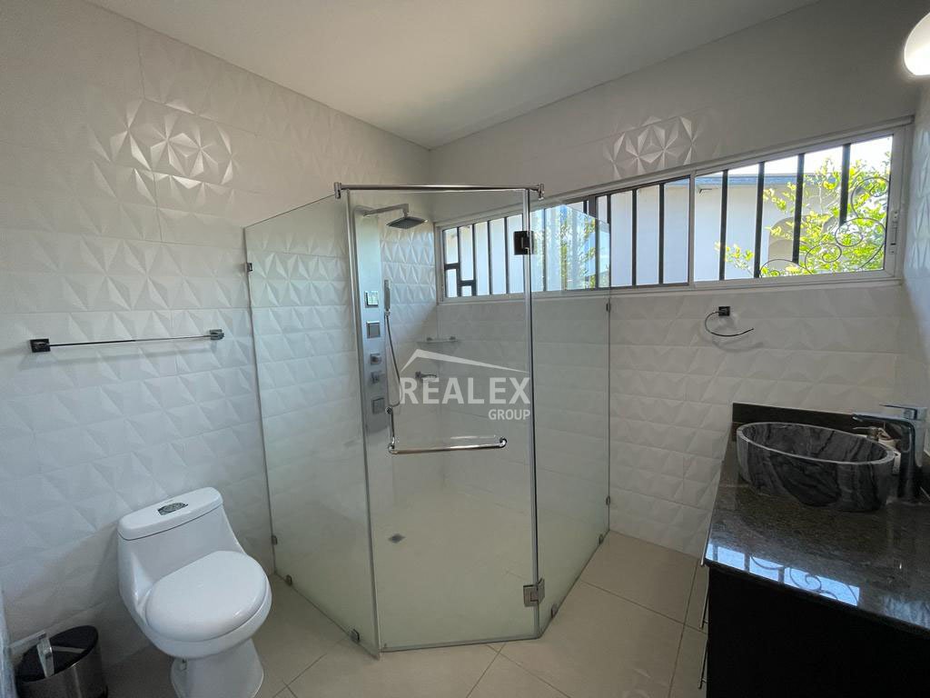 De esquina – Aires acondicionados en toda la casa – Muebles de calidad – Baños revestidos de piso a techo – Baldosas de porcelanato en pisos – Magnifica iluminación – Totalmente cercada – Hermosos diseños en cielo raso – Recamara principal con salida al jardín.
