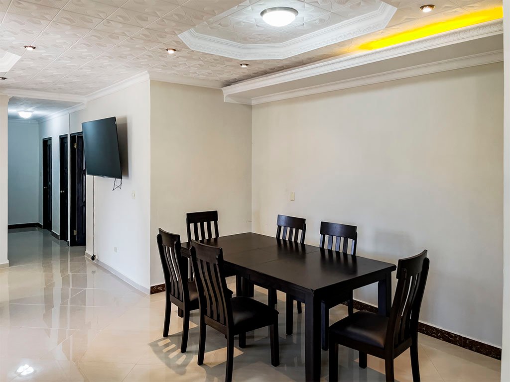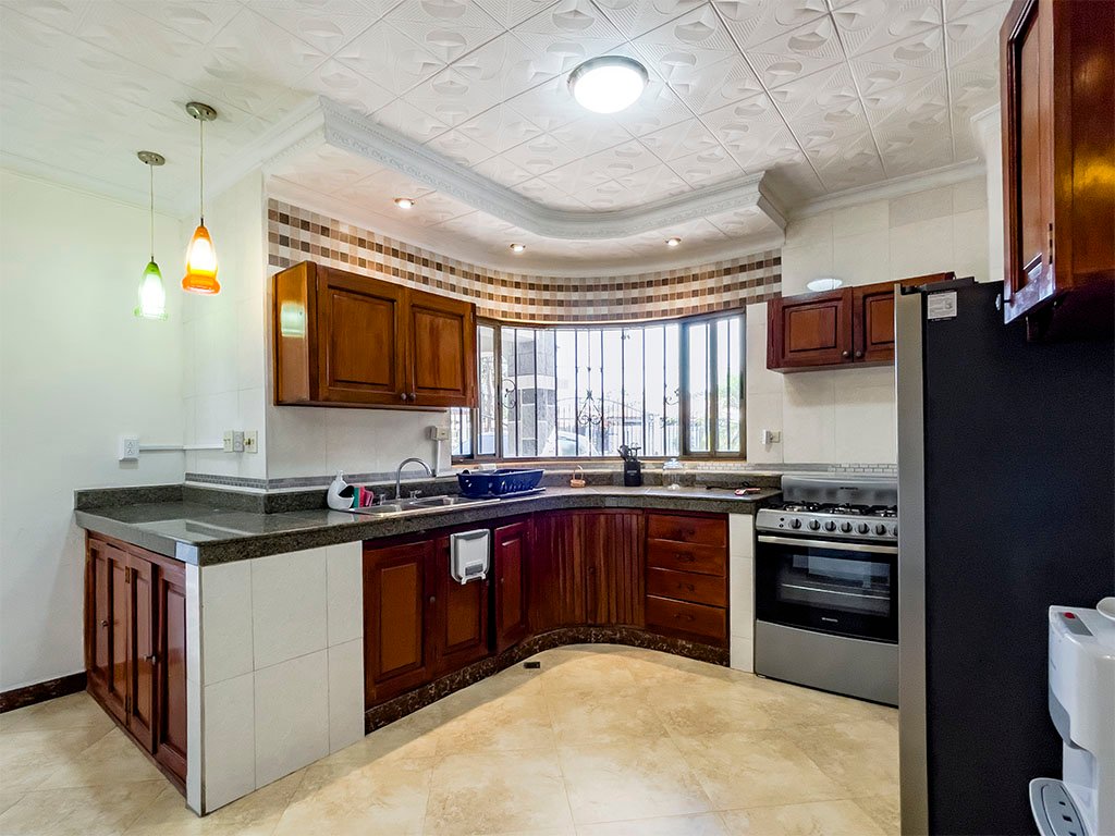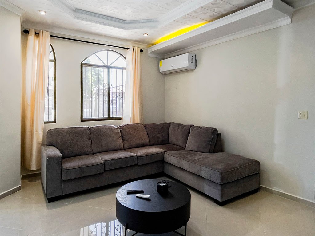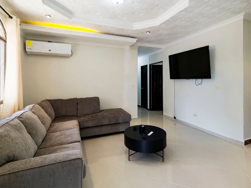 Amoblada / 5 aires acondicionados / 3 espaciosas recamaras (Recamara principal con baño interno), – 2 baños amplios – Cuarto y baño de empleada – Sala / Comedor – Amplia cocina con Gabinetes en Madera y Fregador con triturador de alimentos – Cuarto de oficina – Cuarto de computo – Den y Bar – Terraza Abierta – Lavandería Cerrada – Depósito – Totalmente Cercada con muro y hierro. – Verjas de hierro en puertas y ventanas – Garaje para 2 autos – Puerta cochera – Porche frontal